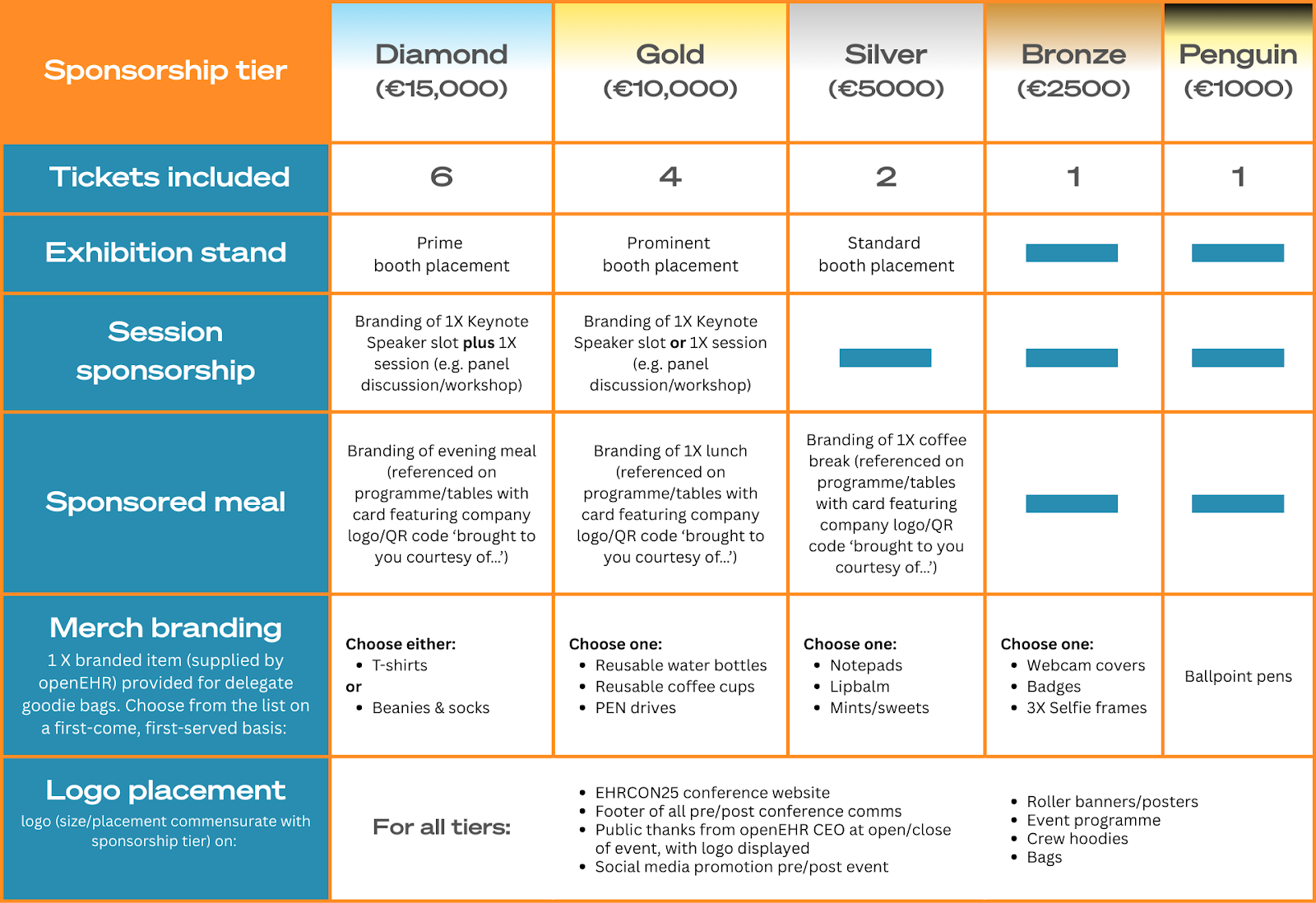 Details to follow very soon. Broadly speaking, we’ll be looking to raise sponsorship funding to make EHRCON26 even better than last year’s conference. We’ll use a tiered system for sponsorship, similar to the brackets last year (see table below which provides a useful guideline until more concrete tiers are agreed).