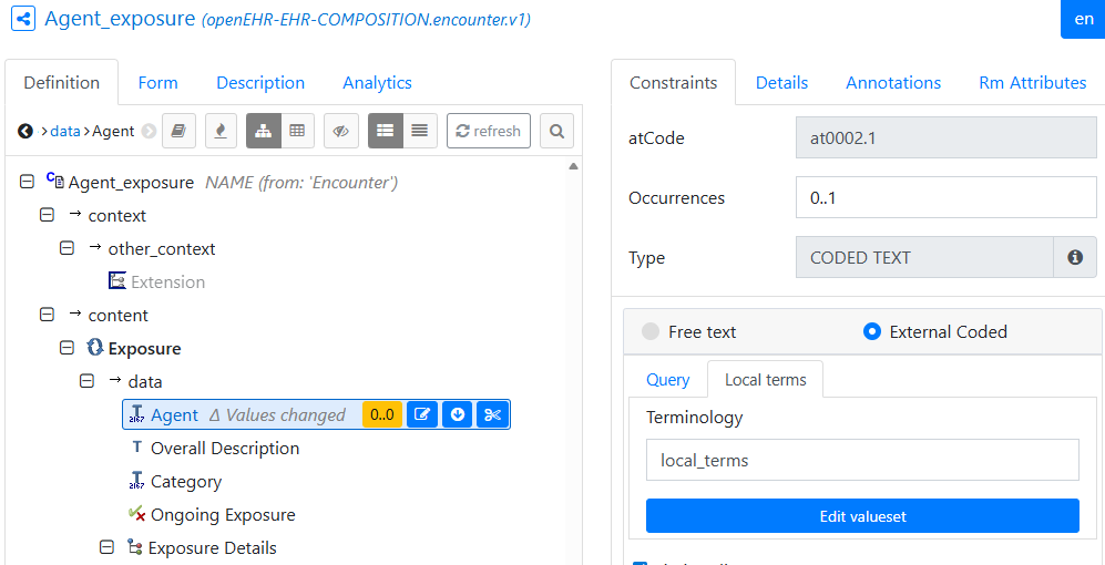 In addition to that I would like to add “coded text” as an available type for the field “Agent” in order to code the individual pollutants according to SNOMED terminology.