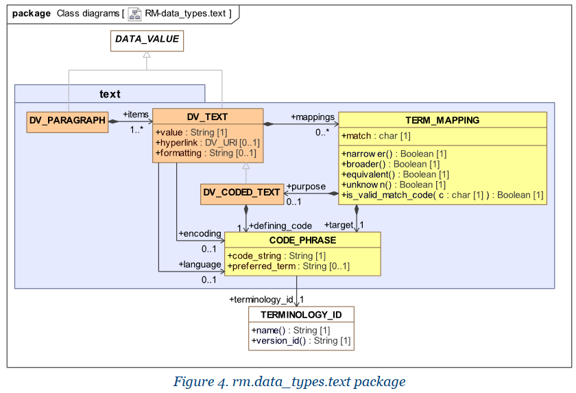 In an openEHR CODED_TEXT where value is mandatory and the main human readable thing perhaps the value could come first rather than the after the coding in the terse format so that the actual value is read before you might read the preferred term of the CODE_PHRASE. Like: value|defining_code.terminology_id::defining_code.code_string|defining_code.preferred_term| That might align more with the DV_TEXT serialization too - putting the value first and then attach more info as a suffix.
