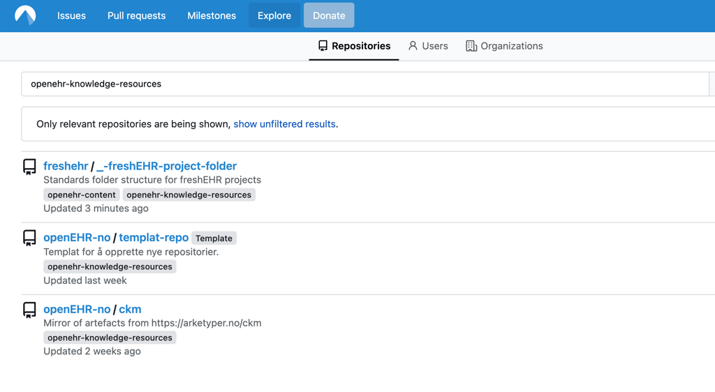 openehr-knowledge-resourcesthen that repo will inappropriately show up in your search results and thereās nothing you can do about it.